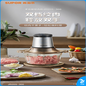 苏泊尔(SUPOR)绞肉机家用电动 不锈钢多功能辅食机婴儿料理机 绞馅机碎肉搅肉机切菜搅拌机JR05S-300(双刀)