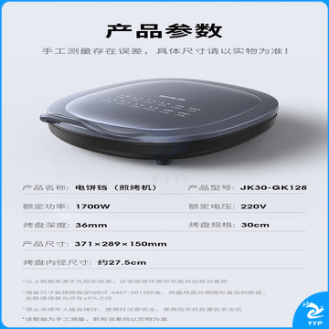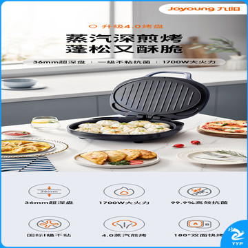 九阳(Joyoung)电饼铛 家用电饼铛 36mm加深烤盘煎烤机 双面加热电饼铛 大火力蒸汽烤肉饼铛JK30-GK128