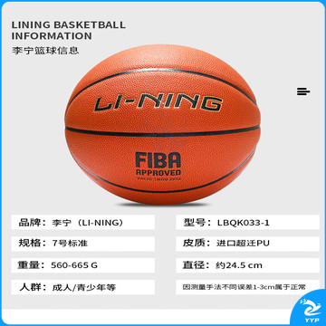 李宁(LI-NING)篮球进口超纤PUFIBA认证官方比赛级用球篮球成人7号 LBQK033-1