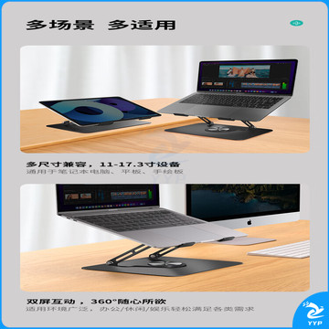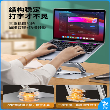 鹿为 笔记本支架360度旋转电脑支架苹果旋转升降支架金属折叠散热器适用华为联想支架 银色SZH333