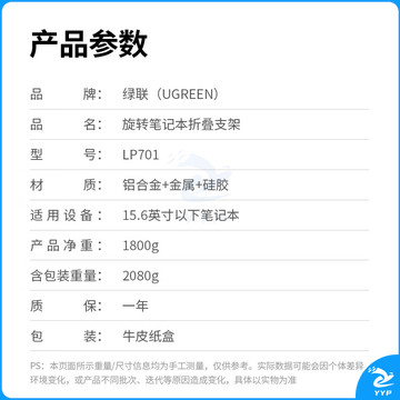 绿联(UGREEN) 笔记本支架电脑支架散热器 360度旋转升降悬空增高桌面立式托架 适用苹果Mac华为联想小新拯救者