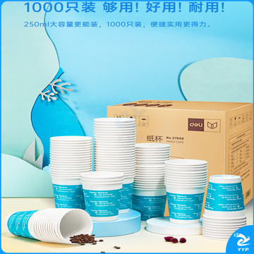 得力(deli)250ml(9盎司)加厚一次性杯子 水杯/纸杯 1000只装 办公用品 蓝色27600
