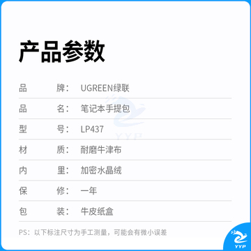 绿联(UGREEN) 电脑包 手提14.9英寸笔记本内胆包 适用苹果华为联想拯救者小米