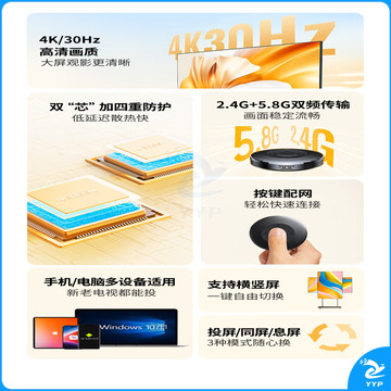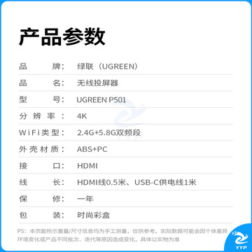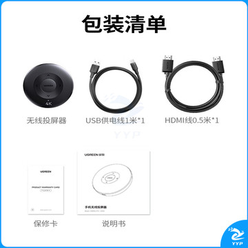 绿联(UGREEN)手机无线投屏器 4K高清HDMI音视频同屏传输器 支持横竖屏适用苹果安卓手机电脑接显示器投影仪