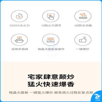 九阳(Joyoung)电磁炉电陶炉2200W大功率家用触控按键耐用面板十档火力纤薄定时功能电磁灶火锅炉C21S-C2130