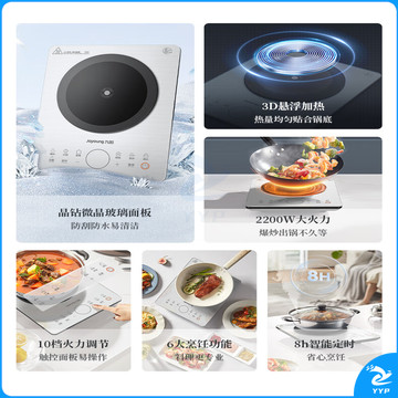 九阳(Joyoung)电磁炉电陶炉2200W大功率电磁灶火锅炉一体微晶面板一键爆炒炒菜智能预约家用电磁炉C22S-N219-A4