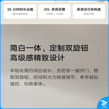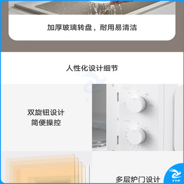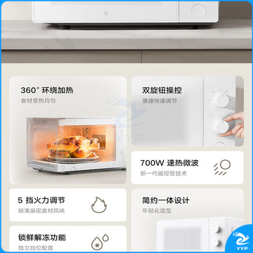 米家小米微波炉家用小型多功能 小尺寸可拆转盘式 大火力均匀加热 机械式双旋钮易操作 台式大容量20升