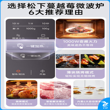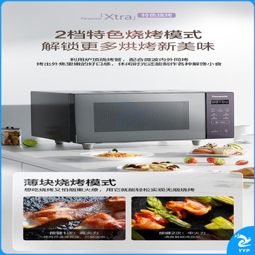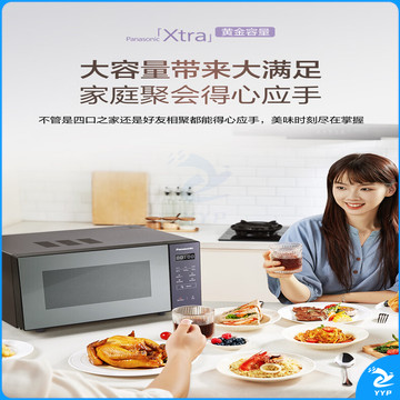 松下(Panasonic)Xtra蔓越莓微波炉烤箱一体机 家用多功能平板式电烤箱 一键感温加热6档变频火力 22升大容量GF231Q