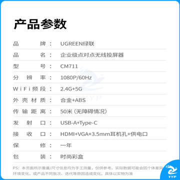 绿联(UGREEN)HDMI无线投屏器 USB同屏器高清办公会议 适用笔记本台式电脑连接显示器投影仪50米传输器25374