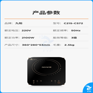 九阳(Joyoung)电磁炉电陶炉家用电磁灶电池炉2100W一键爆炒定时功能防水高颜值防辐C21S-C572