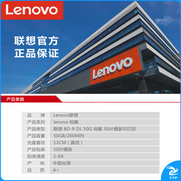 联想(Lenovo)BD-R DL 1-6速 50G 蓝光可打印 50片桶装 蓝光空白光盘 刻录光盘