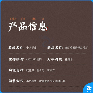 十八子作厨用家用菜刀 花梨木柄刀具鸣刃砍骨刀SL2119-A