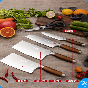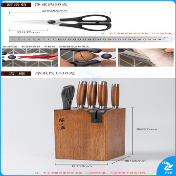 张小泉菜刀厨房刀具套装六件套家用厨具套装切片刀切菜刀剪刀带磨刀器