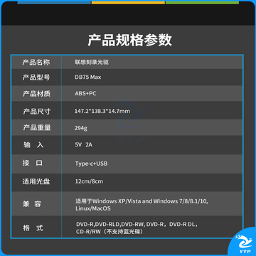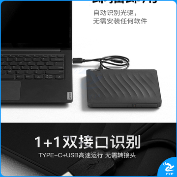 联想(Lenovo)8倍速 外置光驱 DVD外置刻录机 移动光驱 外接光驱 笔记本电脑便携光驱外置读刻一体黑色 DB75-Max