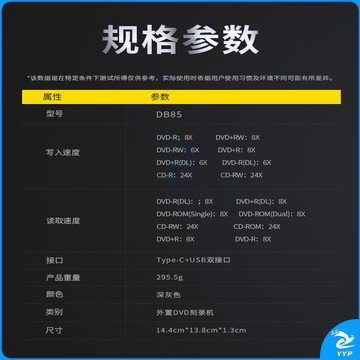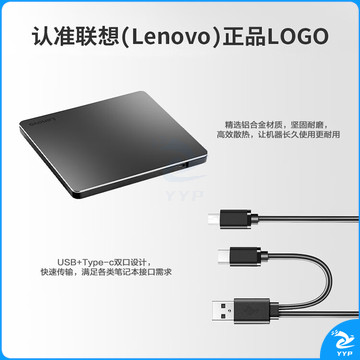 联想(Lenovo)8倍速 铝合金材质 Type-C/USB外置光驱 DVD外置刻录机 移动光驱 笔记本电脑光驱外置读刻一体 DB85