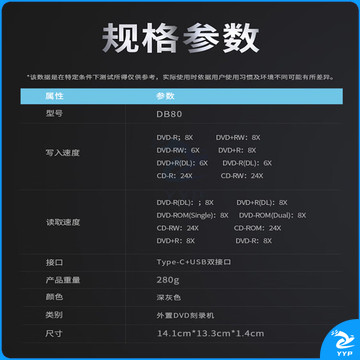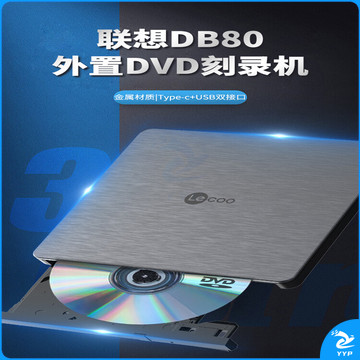 联想来酷 8倍速铝合金材质 外置光驱 DVD刻录机 移动光驱 外接光驱 笔记本光驱外置读刻一体黑DB80