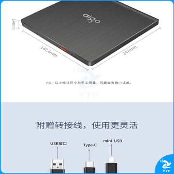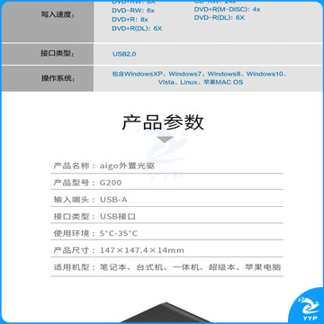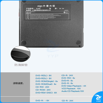 爱国者(aigo)8倍速 USB外置光驱 DVD外置刻录机 移动光驱 外接光驱 笔记本电脑便携光驱外置读刻一体黑色 G200