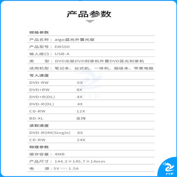 爱国者(aigo)6倍速 USB3.0外置蓝光刻录机 BD蓝光光驱 读刻一体移动光驱 外接光驱 笔记本光驱外置便携式 BD500