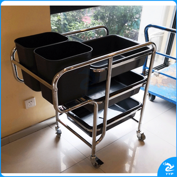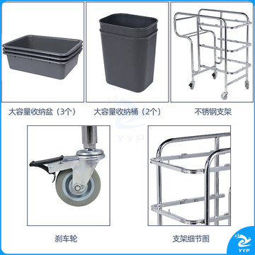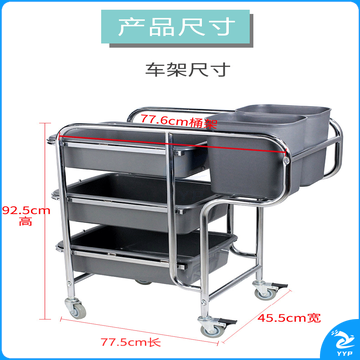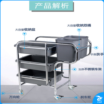 斯图多功能清洁车手推车保洁车物业商场酒店餐厅保洁工具 垃圾打扫车 不锈钢车附送(3盘+2桶)