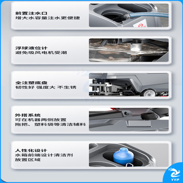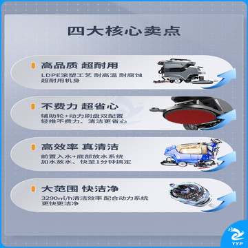 扬子手推式工业洗地机商用24V/100A锂电免维护YZ-Q2 清洁宽度54cm洗拖一体车工厂洗地车扫地机清洁车拖地机