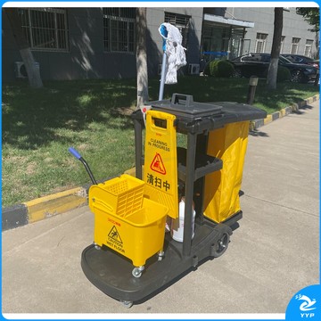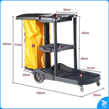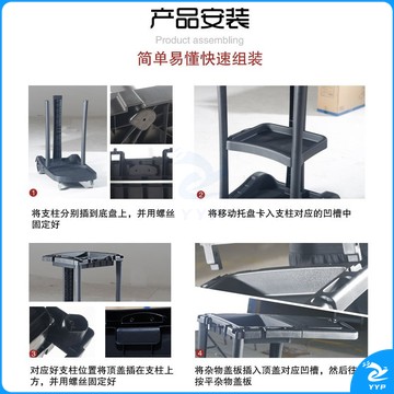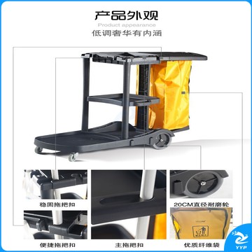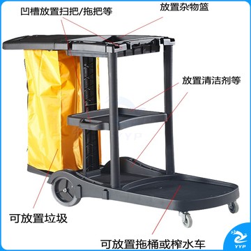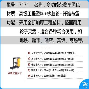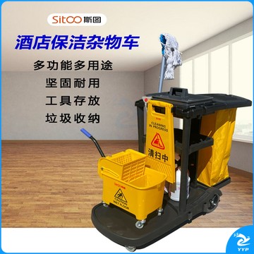 斯图(sitoo)三层杂物车 加厚多功能清洁手推车保洁车清包车 小黄袋帆布收集袋 7171 黑色多功能杂物车