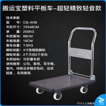 搬运宝折叠平板车手拉车拖车小推车小拉车拉货车72x46cm承重400斤CQ-XH8