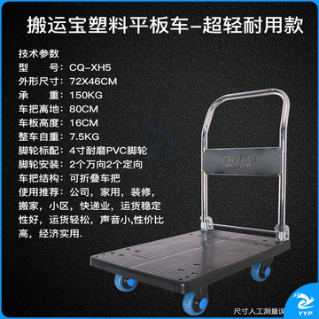 搬运宝平板车拉货小推车拖车行李车手推车小拉车72x46cm承重300斤CQ-XH5