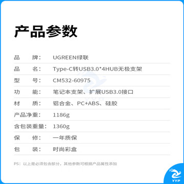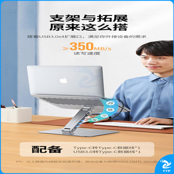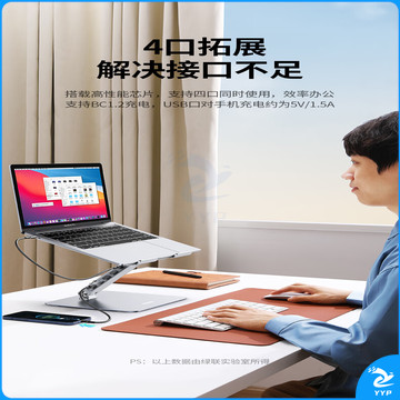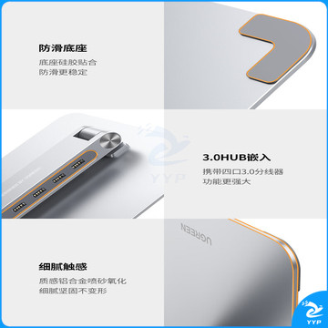 绿联(UGREEN) 笔记本支架扩展 电脑桌支架带USB3.0分线器 升降增高架散热器适用苹果Macbook华为联想拯救者拓展