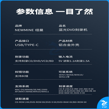 纽曼(Newmine)DRW-801 外置蓝光USB3.0光驱高速外接移动DVD刻录机支持3D蓝光播放机蓝光dvd播放电脑通用