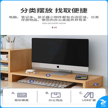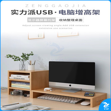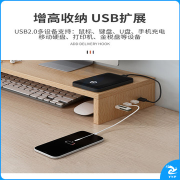 京惠思创电脑增高架单层USB显示器托架垫高底座支架桌面收纳架办公置物架