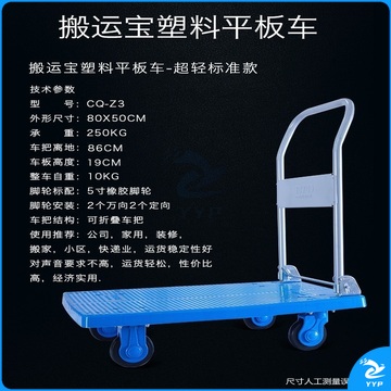 搬运宝小推车拉货平板车折叠手推车拖车手拉货车80x50cm承重500斤CQ-Z3