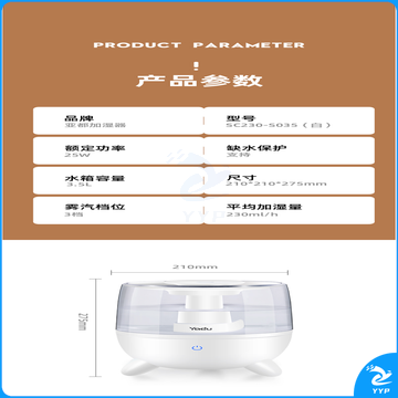 亚都(YADU)SC230-S035 加湿器 卧室静音大雾量过滤加湿 上加水 3.5升 卧室孕妇婴儿家用触控加湿器 白色