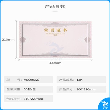 晨光(M&G)文具12K荣誉证书内芯纸 300*210mm 50张/包ASC99327