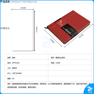 1晨光APY4J361 A5皮革胶套本办公笔记本皮面本 120页 颜色随机