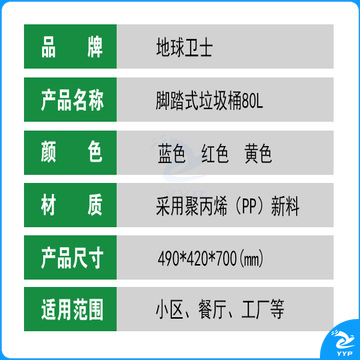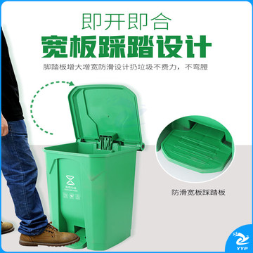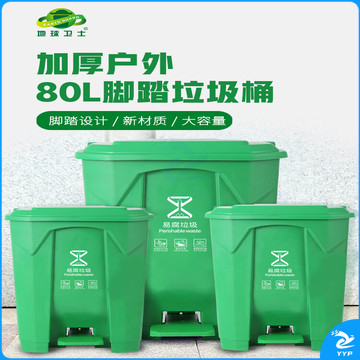 地球卫士 户外垃圾桶80L脚踏加厚环保全新料环卫垃圾桶带盖 工业小区物业饭店酒店户外垃圾桶绿色