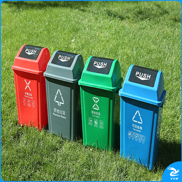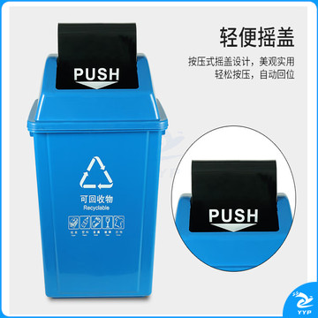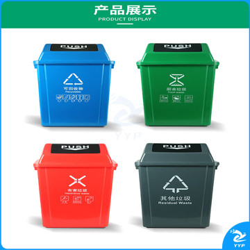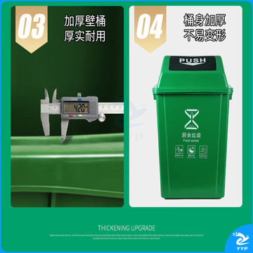 地球卫士 40L垃圾分类垃圾桶大号带盖厨房大垃圾箱商用饭店餐饮可回收厨余环卫户外分类40升摇盖分类红色