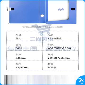 得力(deli) 蓝色塑料档案盒粘扣资料盒A4文件收纳盒办公用品文件盒 5623ES蓝色【背宽55mm】