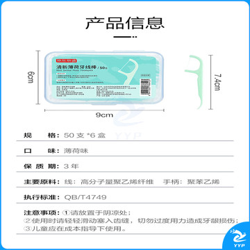 抗菌薄荷牙线棒50支*6盒 细滑牙线棒 清洁齿缝便携牙签牙线