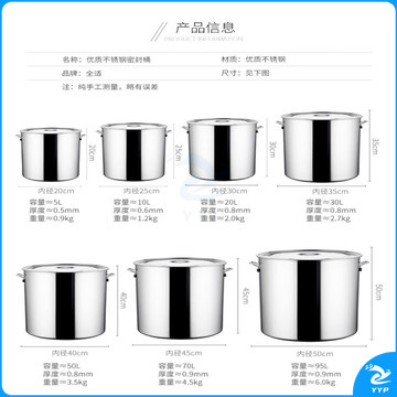 【全适汤桶】全适 不锈钢桶带盖汤桶加厚储水桶大汤锅45*45食堂酒店餐饮商用厨具