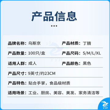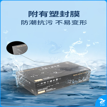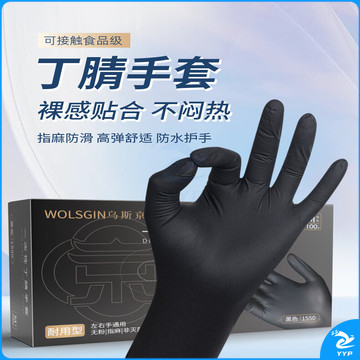 乌斯京(WOLSGIN)一次性手套丁腈橡胶厨房食品级加厚耐用家务丁晴手套黑色 大码