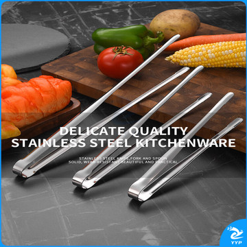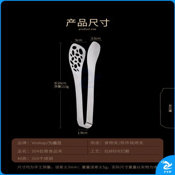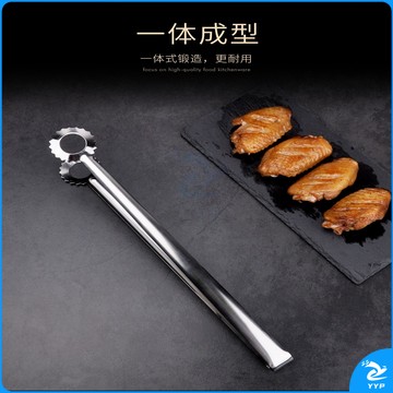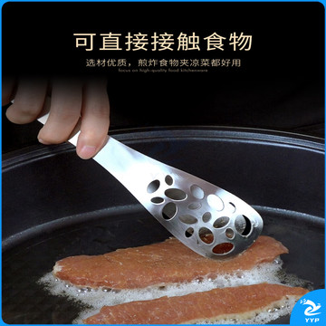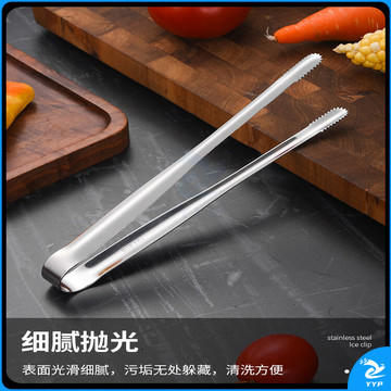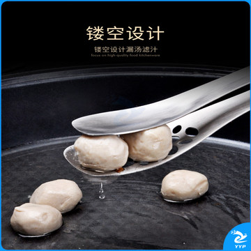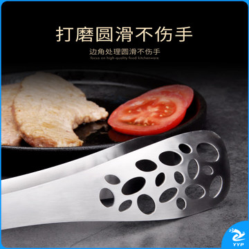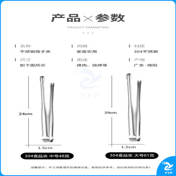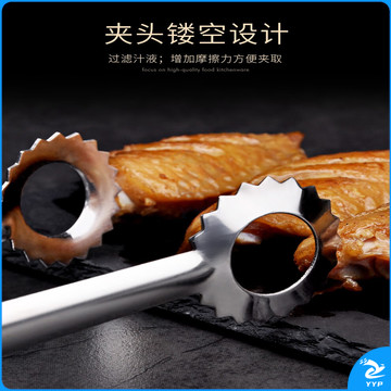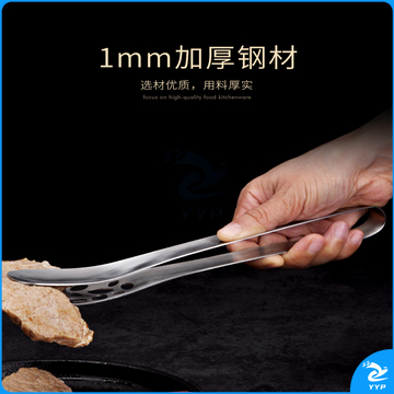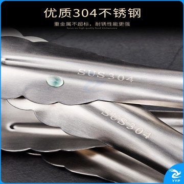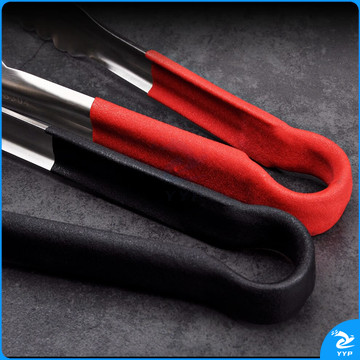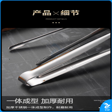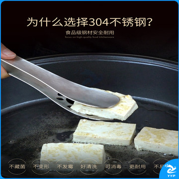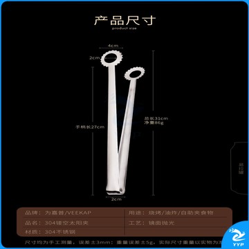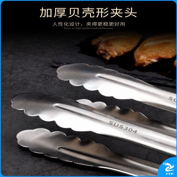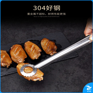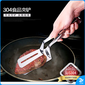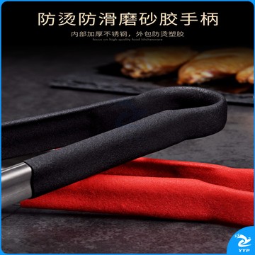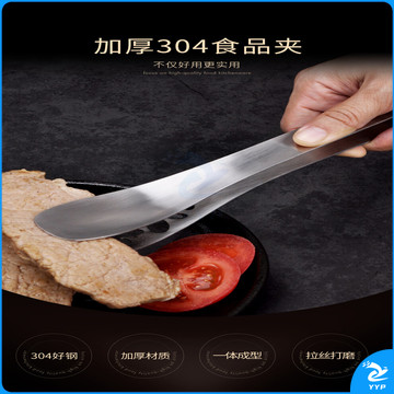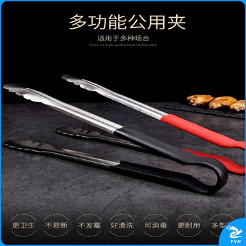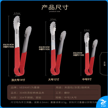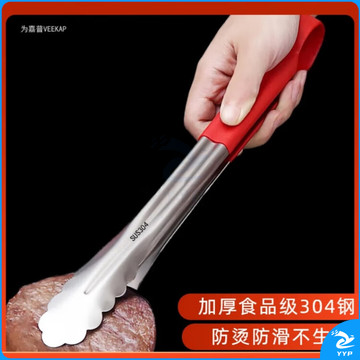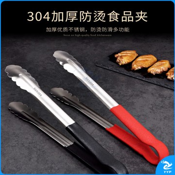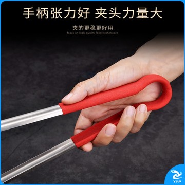 304不锈钢夹子食品夹长柄厨房夹菜烤肉夹子煎牛排夹子烧烤食物夹 304红柄夹加大号14寸36cm