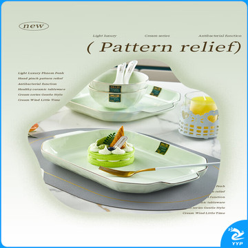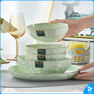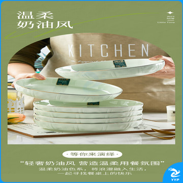 若岚盘子菜盘家用新款陶瓷饭盘好看的加厚大容量深盘碗碟套装 7.5英寸圆盘