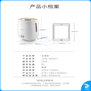 小熊(Bear)加湿器卧室迷你家用办公室桌面银离子材质5L大容量轻音空气加湿器伴侣JSQ-A50U1