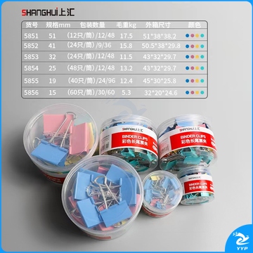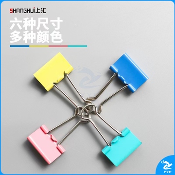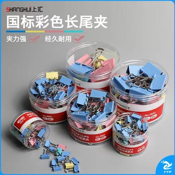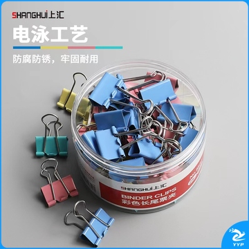 上汇长尾夹凤尾夹(41mm/24只/筒)文具办公资料铁夹黑色金属燕尾夹彩色大号文件夹小号票据试卷夹鱼尾夹不锈钢 5852彩色大号