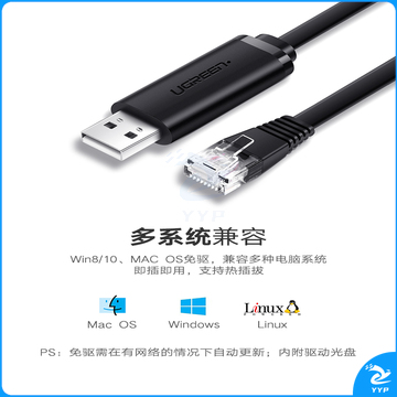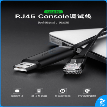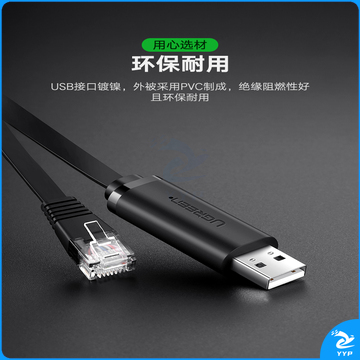 绿联Console调试线USB转RJ45控制线交换机配置线转换线适用思科华为腾达TP-LINK路由器 黑色3米