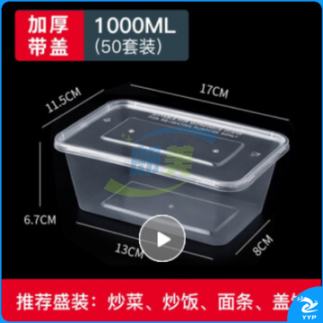 一次性饭盒 餐盒 长方形透明塑料快餐盒50只装1000ml