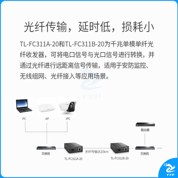 TP-LINK TL-FC311A-20 千兆单模单纤光纤收发器 光电转换器(单只装)