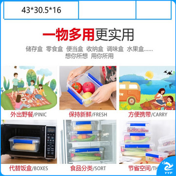 大号保鲜盒带盖酒店厨房冷冻食品收纳盒透明保鲜盒长方形塑料盒