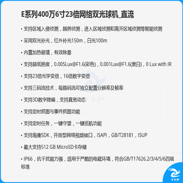 海康 E系列400万6寸23倍网络双光球机_直流