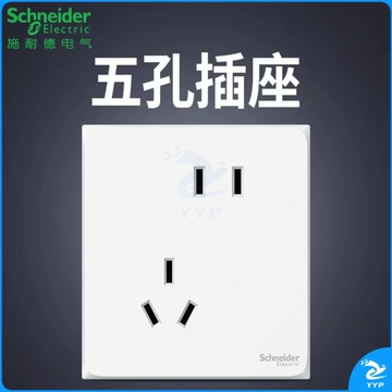 施耐德开关 新国标斜五孔插座 86型暗装5孔开关插座面板 奶油白色